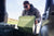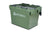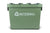 Green storage boxes made from recycled ocean plastic with Waterhaul branding stacked in the back of a car.
